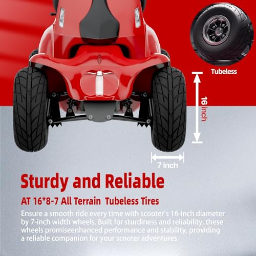 Four fat tires and independent suspension provide noticeable stability. While uneven pavement or light gravel can challenge smaller scooters, this one absorbs bumps effectively. The rear anti-tip wheels also add confidence when turning or climbing moderate slopes.