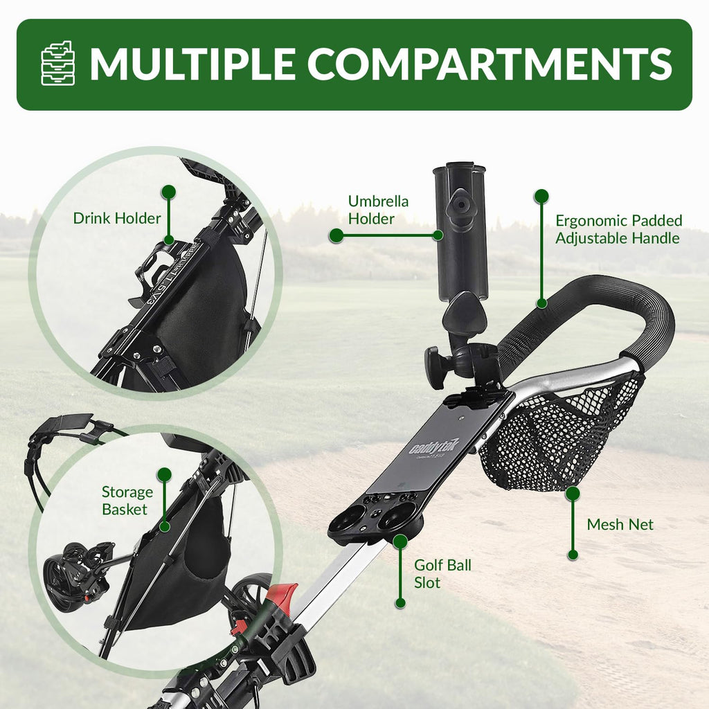 Whether you're tackling hills or strolling fairways, this cart keeps your gear organized, accessible, and off your back—literally.