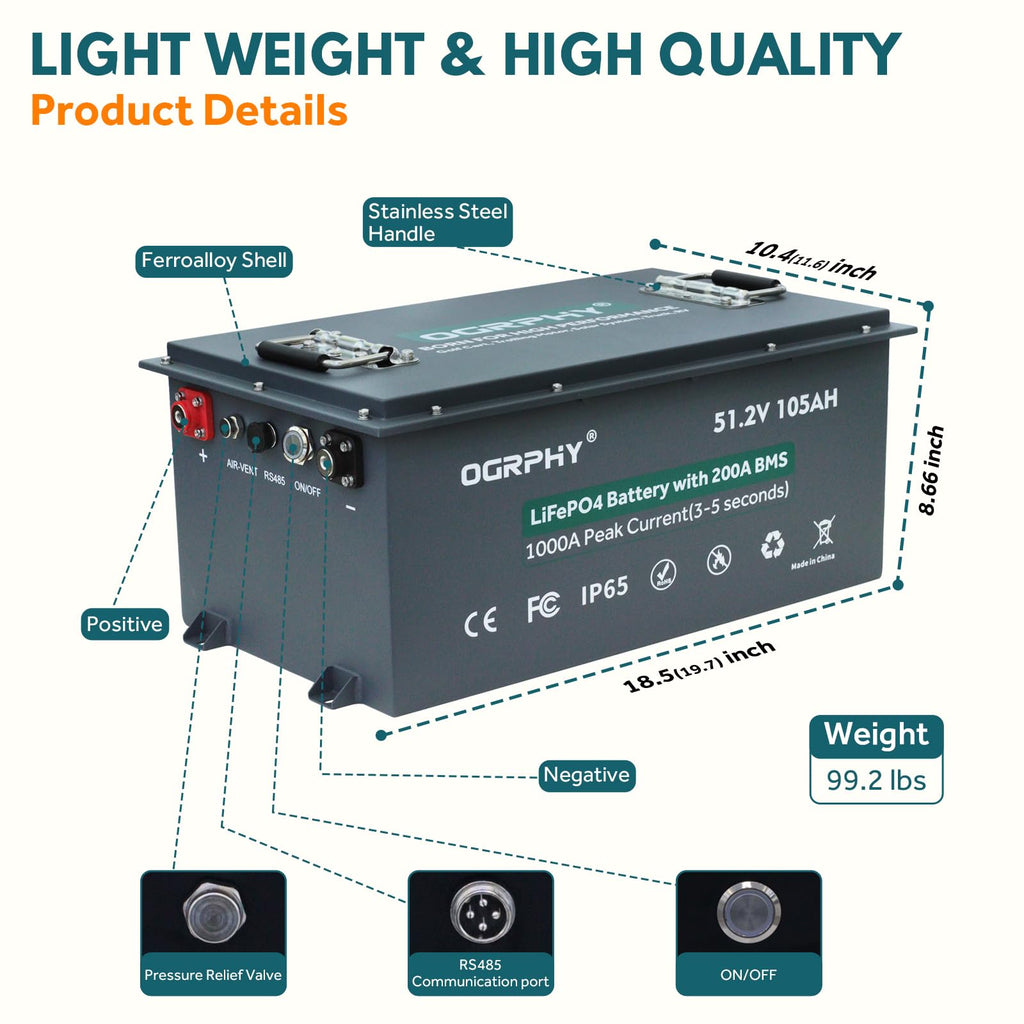 - OGRPHY 48V 105Ah LiFePO4 golf cart battery